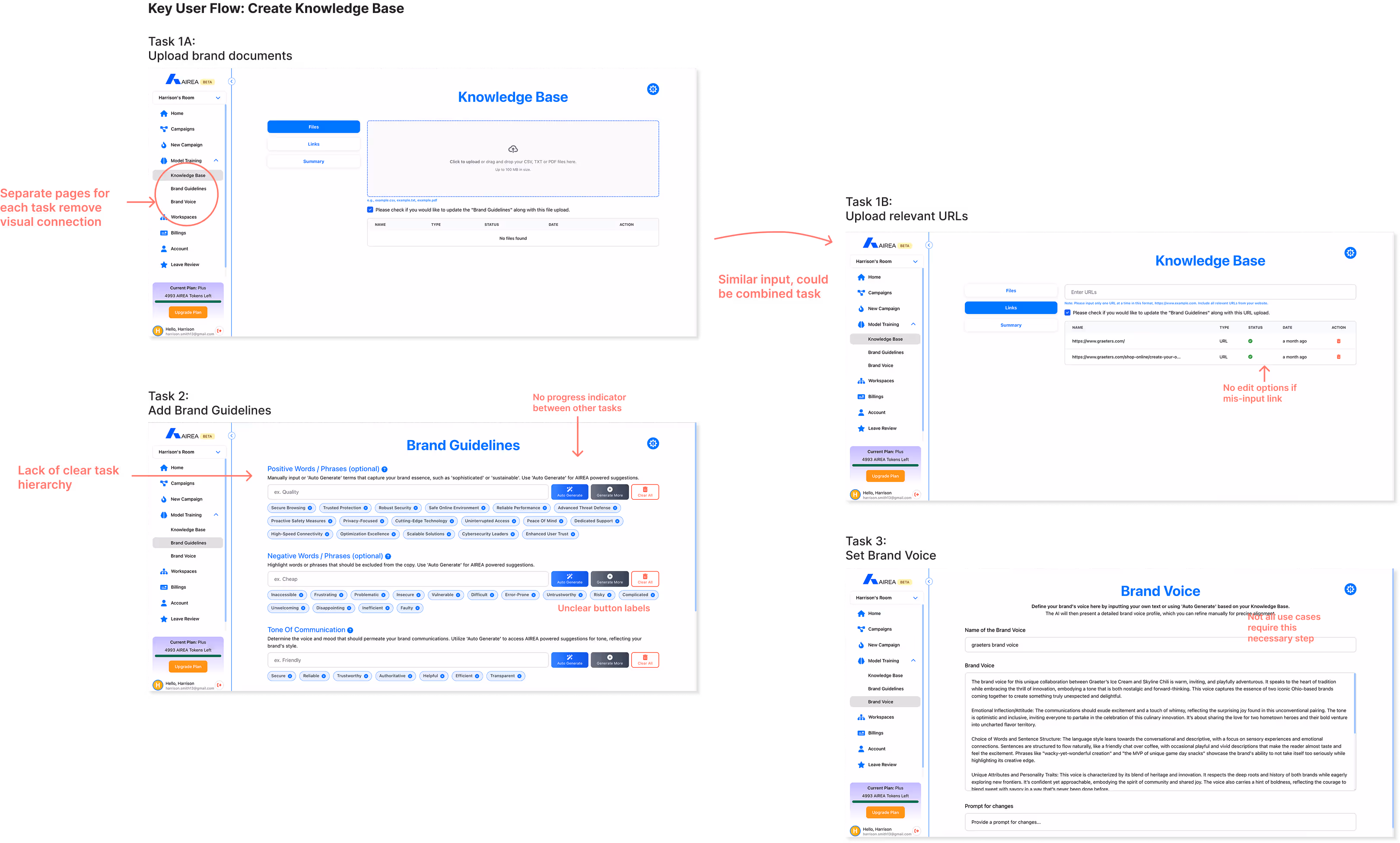 The proposed dashboard, which combines key features into a single, campaign-focused workspace, was met with enthusiasm from both the CEO and managing director. While it’s not a current development priority due to ongoing business and technical considerations, the concept has strong support across the team and is positioned as a key part of Airea’s future product vision.