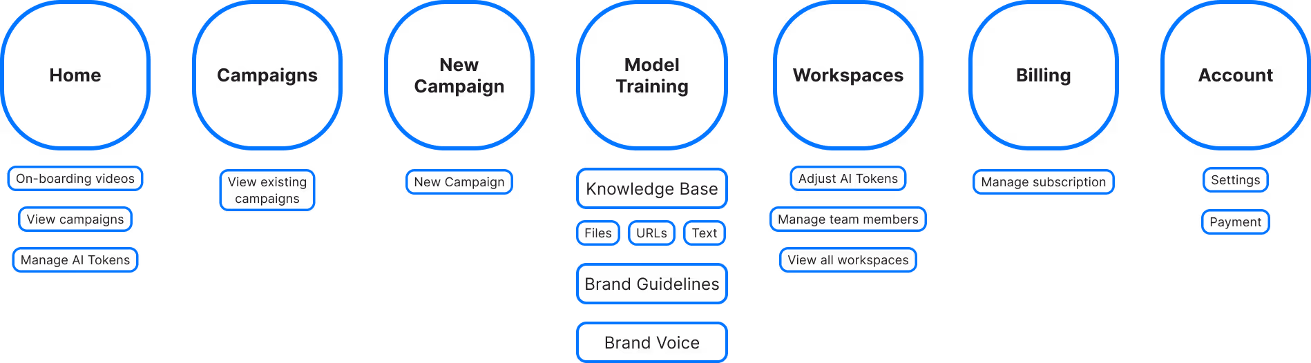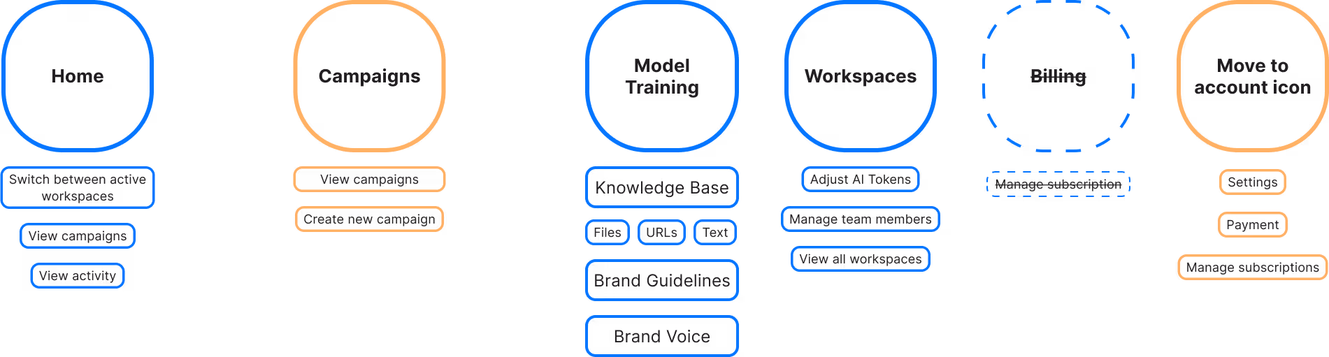 Things feel separate, hard to understand what connects to what, and how to navigate the different features. Marketers using this would interact with campaigns the most so making that the more prominent feature is important. Also creating a home that feels more like a home, giving marketers an at-a-glance view of their projects.